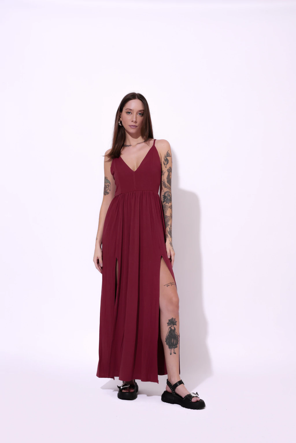 Vestido Longo Kira Vermelho em viscolycra, possui elástico na cintura e duas fendas frontais. Modelinho super confortável e maravilhoso, use com cintinho para dar aquele toque perfeito no look!